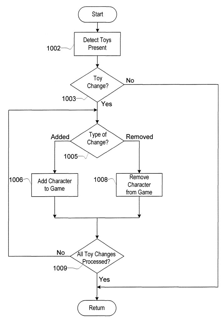 U.S. Patent No. 10,315,119 (the ‘119 Patent) relates to a video game and video game peripherals. The ‘119 Patent attempts to add a physical component that a player may touch which is representative of an object associated with the game. This invention proceeds by receiving information from the memory of the toy and then modifying the in-game character based on the information received. The changing status of the toy also informs how the in-game character associated with the toy will be displayed. The toy can be sensed using a radio frequency and the game console interface is configured to read information from the toy over this channel. The video game system also can be set up to remember and identify changes in the toy from the last time it was connected. All these implementations of the technology come together to improve user engagement with the video game.
