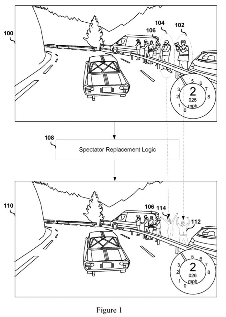 U.S. Patent No. 10,668,382 (the ’382 Patent) relates to augmenting virtual reality video games by using the avatars of a user’s friends either in addition to, or to replace generic spectator avatars. The ’382 Patent details a system that identifies a virtual location associated with a generic spectator, or where an additional spectator may be added, and either replaces the generic spectator with a friend’s avatar, or adds the avatar in without replacing a generic spectator. The friend’s avatar moves with a prerecorded animation. In one embodiment, a user’s friend may be able to spectate the user from the position of their spectating avatar, and the movement of the friend’s avatar may mimic the movement of the friend in real life if the friend is also using a head mounted display. In another embodiment, time in the video game may slow when the friend’s avatar is visible to the user before speeding back up once the friend’s avatar is out of view.