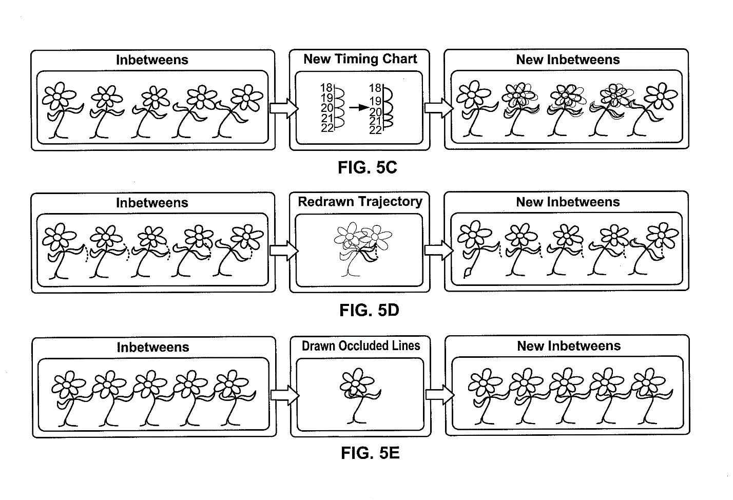 The result of analysis is a generated list of strokes. Then corresponding stroke pairs between the key frames are determined and for each pair a continuous stroke motion for moving the endpoints between the two key frames is generated. This is adjusted automatically for a continuous stroke motion with a small margin of error. An animation time for the inbetween frame is also determined relative to the animation times of the key frames. The automatically generated strokes are stored in such a way that allows them to be edited later electronically. The ‘277 patent is one of many “quality of life” improvements that computers have provided animators.