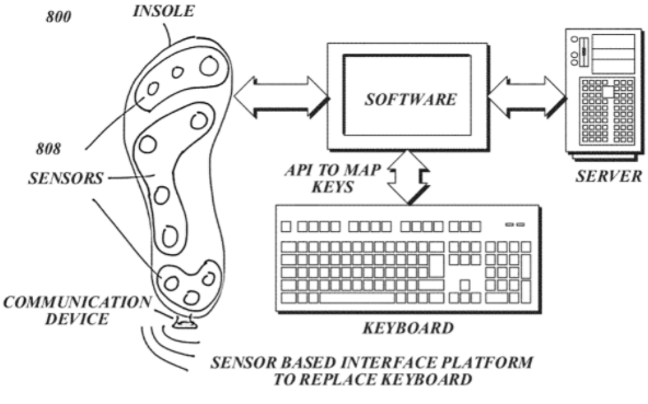 The’356 patent can include sensors that contain an accelerometer (senses acceleration) and a gyroscope (can maintain a reference for direction because of stability). The system can also include a clock which communicates with a master device and can provide time stamps onto data collected by the various sensors. The footwear system can be configured for indoor use or outdoor use. The ‘356 patent could be used similarly to smart watches as used in the context of athletic activities or could be used to move an avatar in a virtual world.