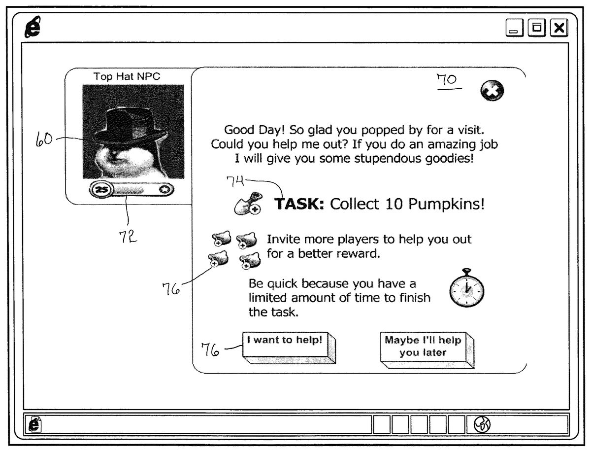 U.S. Pat. No. 9,022,868 U.S. Pat. App. No. 13/370,964 METHOD AND SYSTEM FOR CREATING A VIRTUAL WORLD WHERE USER-CONTROLLED CHARACTERS INTERACT WITH NON-PLAYER CHARACTERS Ganz February 10, 2012