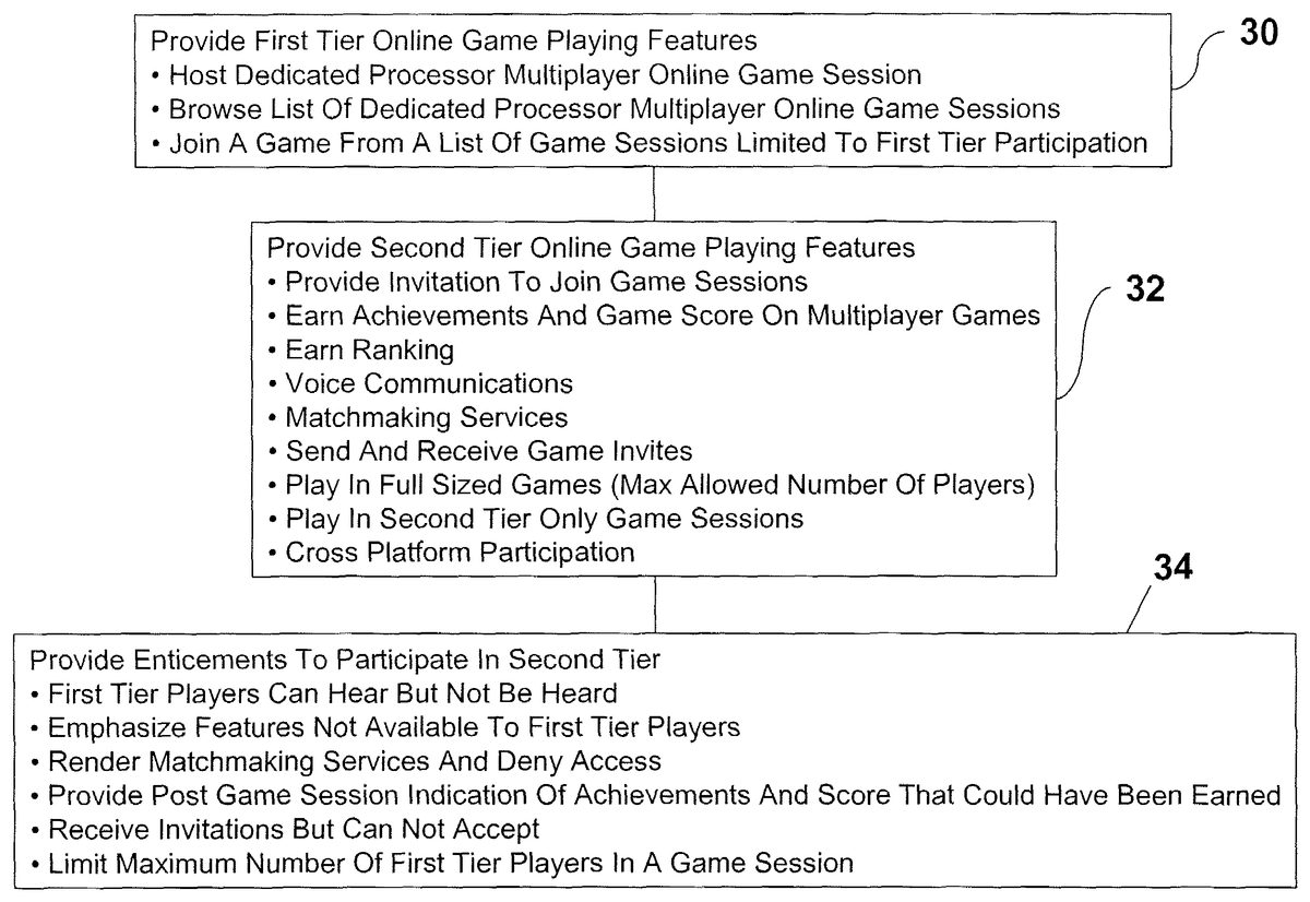 U.S. Pat. No. 8,944,917 U.S. Pat. App. No. 11/694,535 MULTI-TIER ONLINE GAME PLAY Microsoft Corporation March 30, 2007