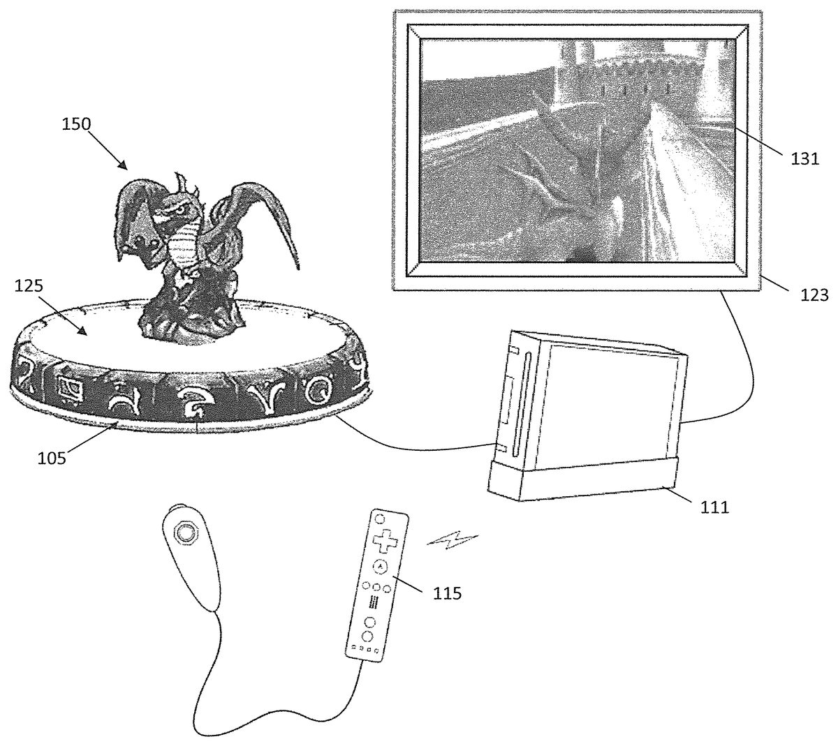 U.S. Pat. No. 9,901,832 U.S. Pat. App. No. 14/707,741 INTERACTIVE VIDEO GAME WITH TOYS HAVING FUNCTIONALITY THAT IS UNLOCKED THROUGH GAME PLAY Activision Publishing, Inc. May 8, 2015