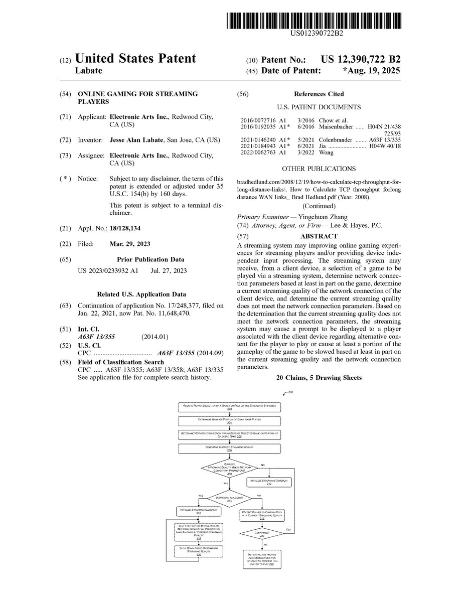 U.S. Pat. No. 12,390,722 U.S. Pat. App. No. 18/128,134 ONLINE GAMING FOR STREAMING PLAYERS Electronic Arts Inc. March 29, 2023