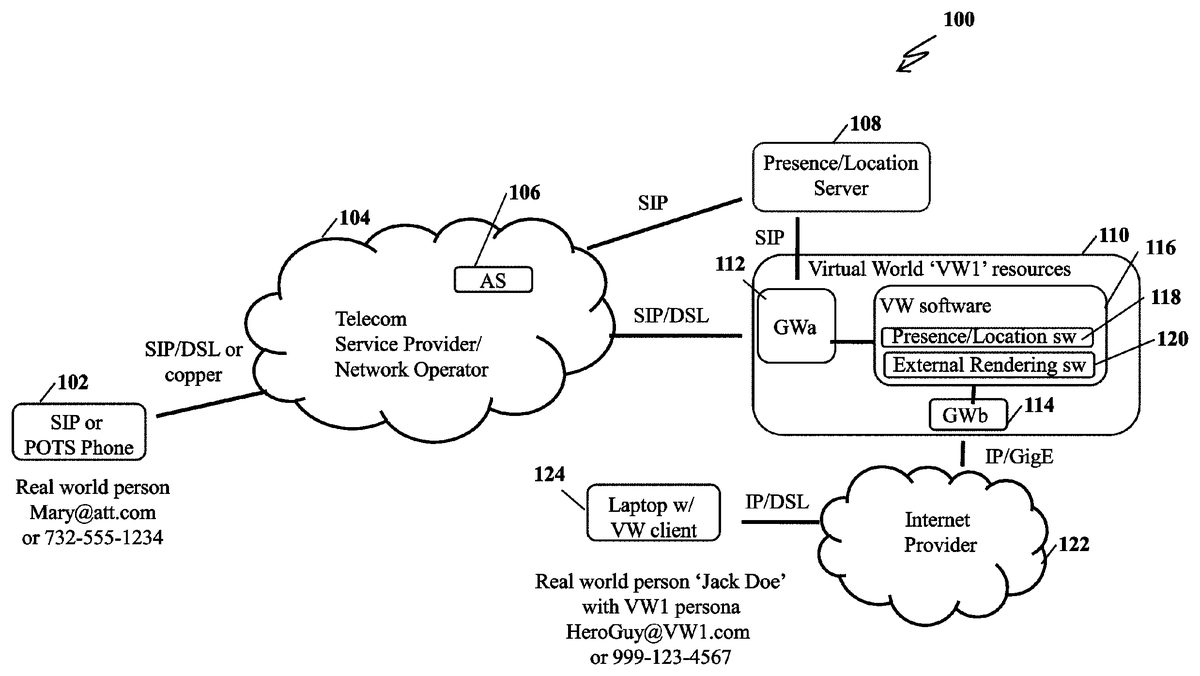 U.S. Pat. No. 8,655,964 U.S. Pat. App. No. 12/637,725 UNIFIED LOCATION & PRESENCE, COMMUNICATION ACROSS REAL AND VIRTUAL WORLDS AT&T Intellectual Property I, LP December 14, 2009