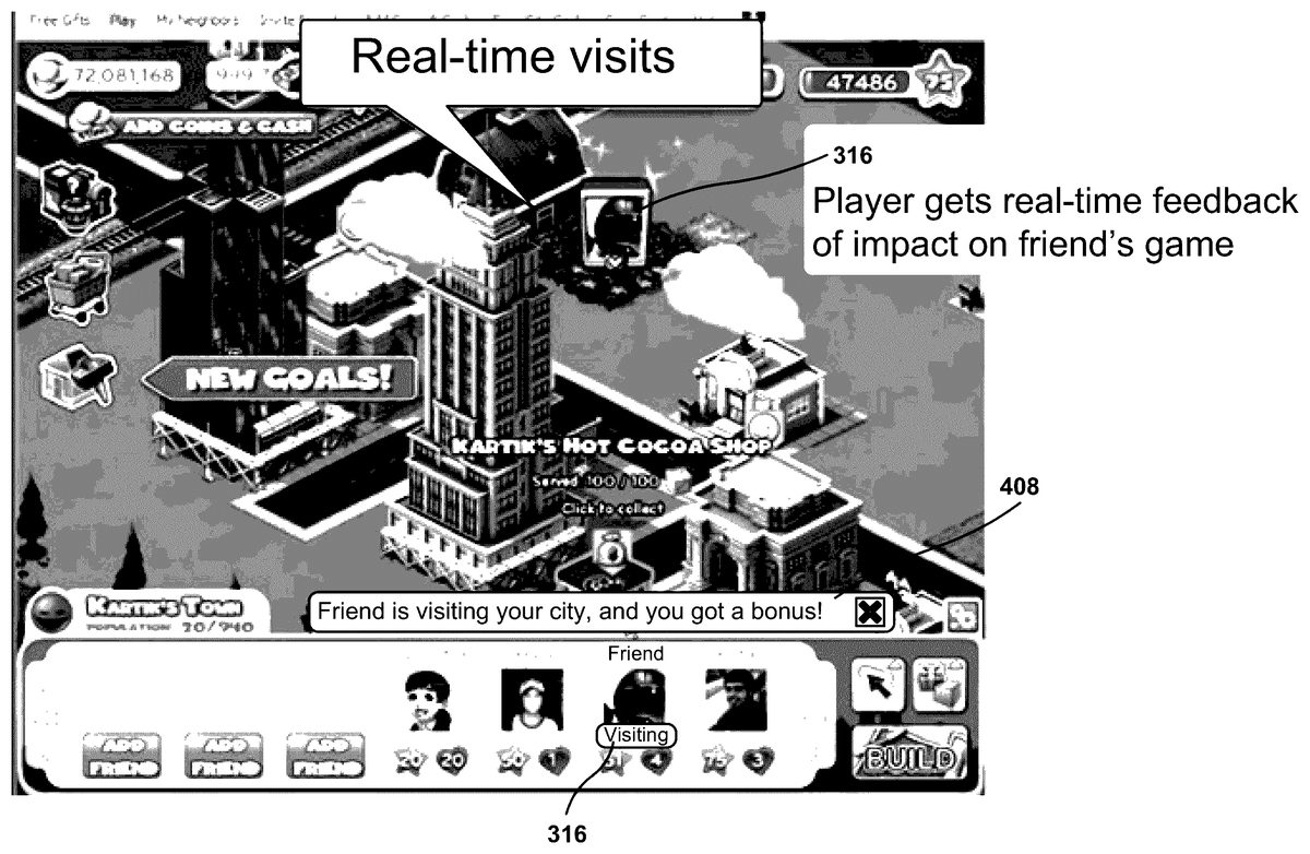 U.S. Pat. No. 9,333,430 U.S. Pat. App. No. 14/639,499 GAMING SYSTEM FOR UPDATING A PRESENTATION OF A VIRTUAL GAME ENVIRONMENT Zynga Inc. March 5, 2015