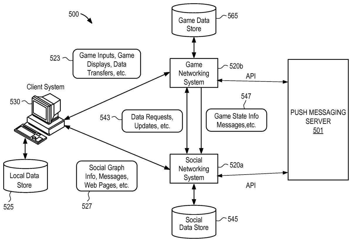 U.S. Pat. No. 9,914,052 U.S. Pat. App. No. 14/610,399 PUSH MESSAGING ARCHITECTURE FOR ONLINE GAMES Zynga Inc. January 30, 2015