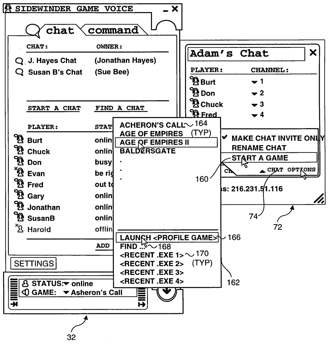 U.S. Pat. No. 7,240,093 Use of online messaging to facilitate selection of participants in game play Microsoft Corporation Unavailable