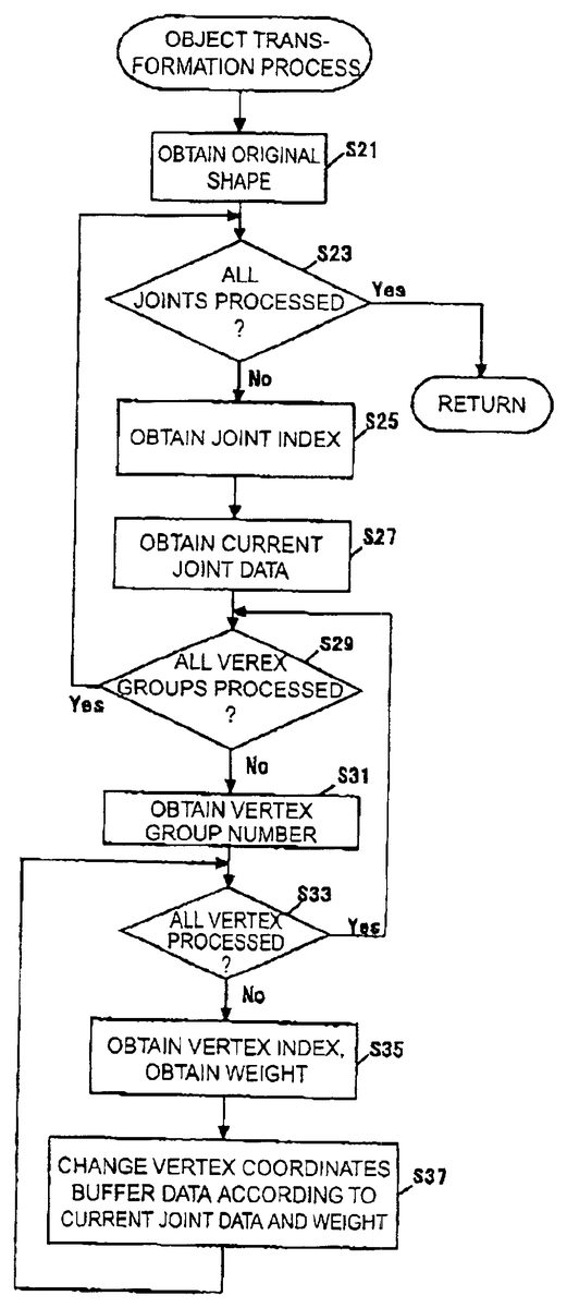 U.S. Pat. No. 7,161,600 U.S. Pat. App. No. 10/042,713 METHODS AND APPARATUS FOR TRANSFORMING THREE-DIMENSIONAL OBJECTS IN VIDEO GAMES Kabushiki Kaisha Square Enix January 26, 2001