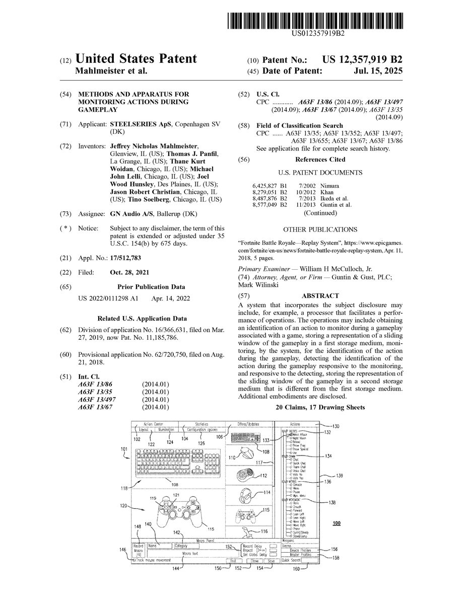 U.S. Pat. No. 12,357,919 U.S. Pat. App. No. 17/512,783 METHODS AND APPARATUS FOR MONITORING ACTIONS DURING GAMEPLAY GN Audio A/S October 28, 2021