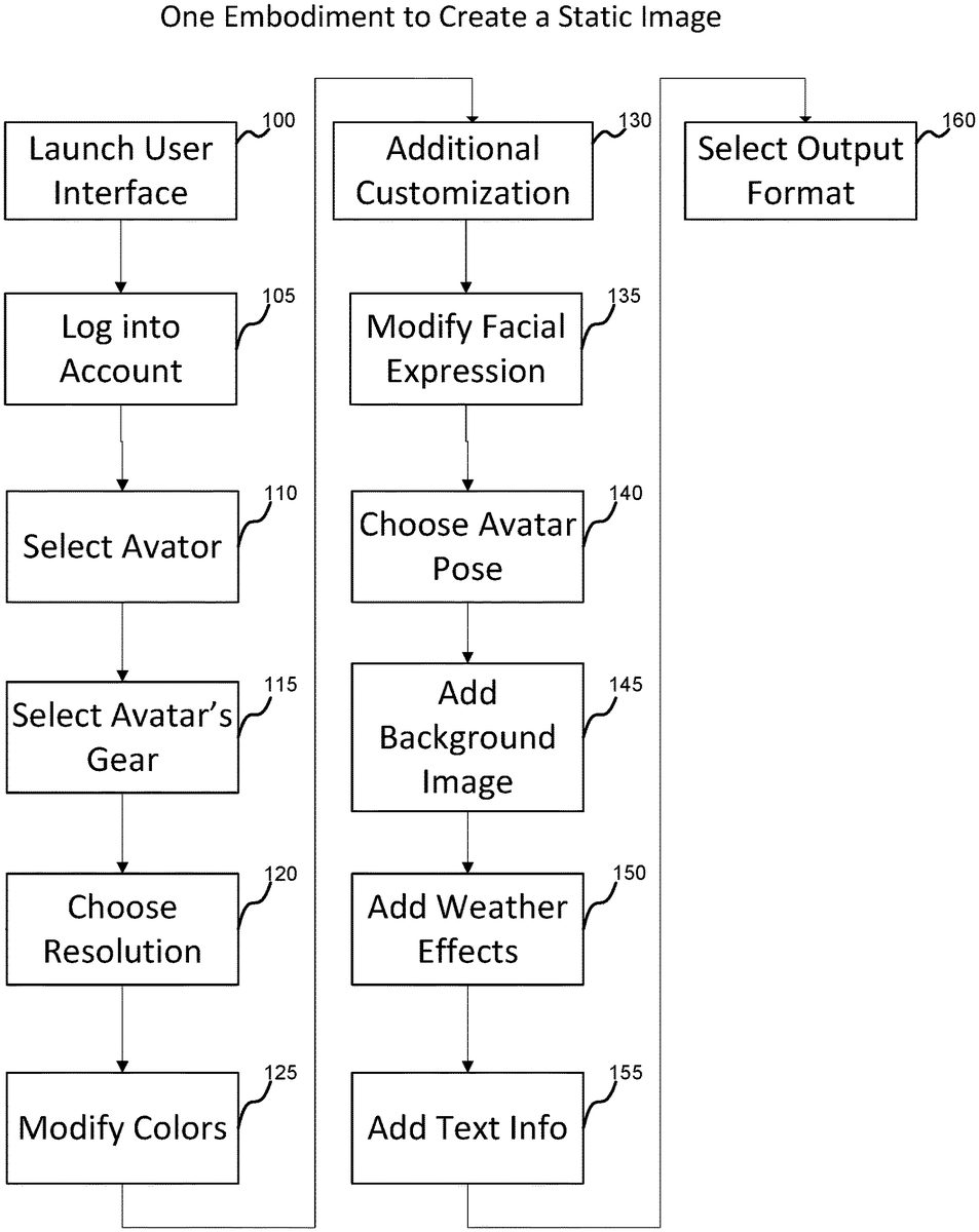 U.S. Pat. No. 11,504,630 U.S. Pat. App. No. 16/820,713 | Massively-Multiplayer-Online-Game Avatar Customization for non-Game Media | Unknown assignee | March 17, 2020 | Patent Details |