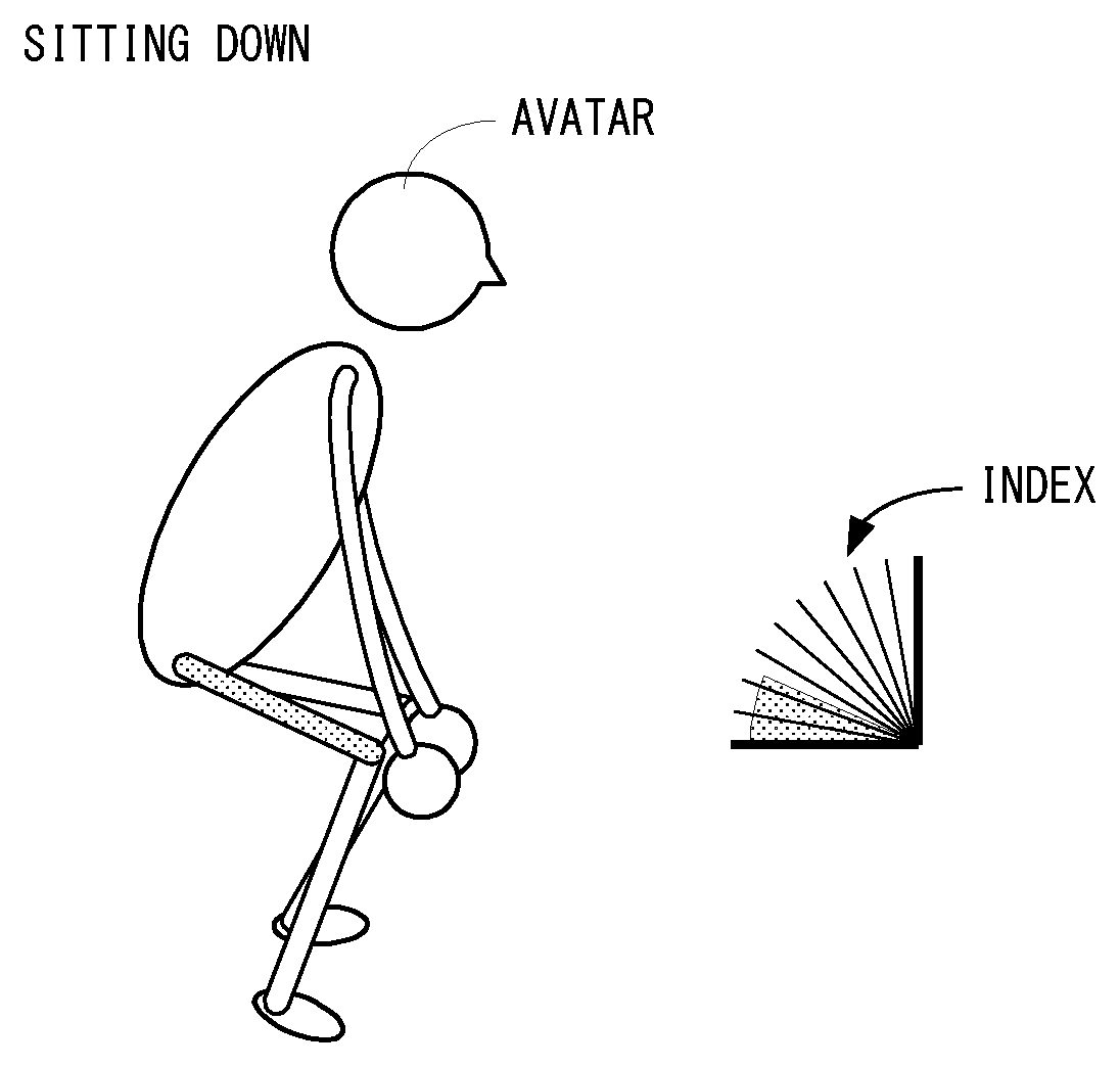 Moreover, it is possible to make the player object perform a repetitive motion by applying a load to the input device2000repeatedly. For example, it is possible to cause the player object to swim in underwater of a virtual space, if a load is applied with a predetermined cycle, a speed that the player object swims is made fast. Inversely, when a load is not applied periodically, a speed that the player object swims can be made slow. Moreover, it is possible to cause the player object to perform an iterative motion such as cutting a tree object or a log object in a virtual space. In such a case, it is possible to change a speed of cutting the tree or log object between when a load is periodically applied and when it is not.