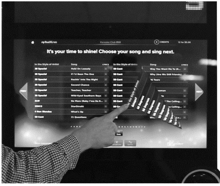U.S. Patent No. 10,963,132 (the ‘132 patent) is one of many patents concerning an entertainment system or jukebox with an interactive user interface (“UI”) which can access social network information. The ‘132 patent sets out a jukebox device with a touch screen display, allowing users to flip through digital songbooks for a pay-for-play jukebox and karaoke machine. Processing resources and the touch screen display cooperate to cause the device to function in different pay-for-play modes. The display presents a first set of screens that list various media available for playback, resembling pages of a book. Each page has a maximum number of entries corresponding to a subset of the total media available, including at least a song name. The screens dynamically rearrange when an input is received indicating a letter for a song name or an artist, so that the listed entries starting with that letter are at the top of a newly turned page.