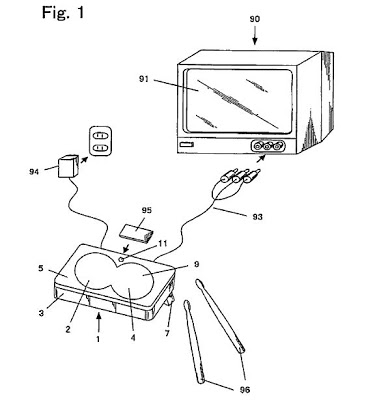 The ‘237 patent describes a music game console where the player strikes a surface in time with notes on the screen to produce musical sounds. The musical sounds change in the game depending on the timing of the player. The pitch of the musical sound is controlled by the location of the player’s strike and the strength of the strike. Pitches are lowest at the bottom of the strike zone and are quieter when the player strikes the surface softly.