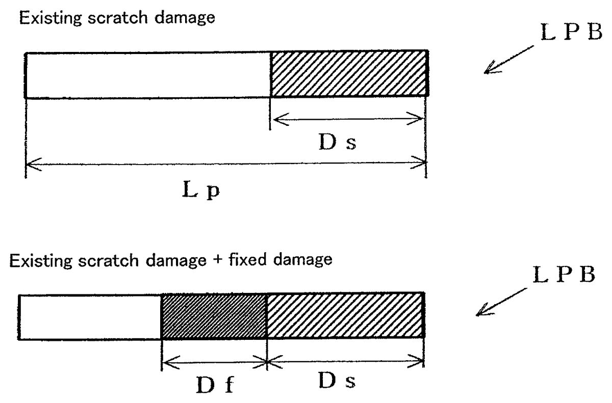 As shown inFIG. 15(b), when there is scratch damage Ds, the value of Ds is displayed in different color without changing the length of the entire bar graph LPB in order to indicate that there is as much scratch damage as Ds.